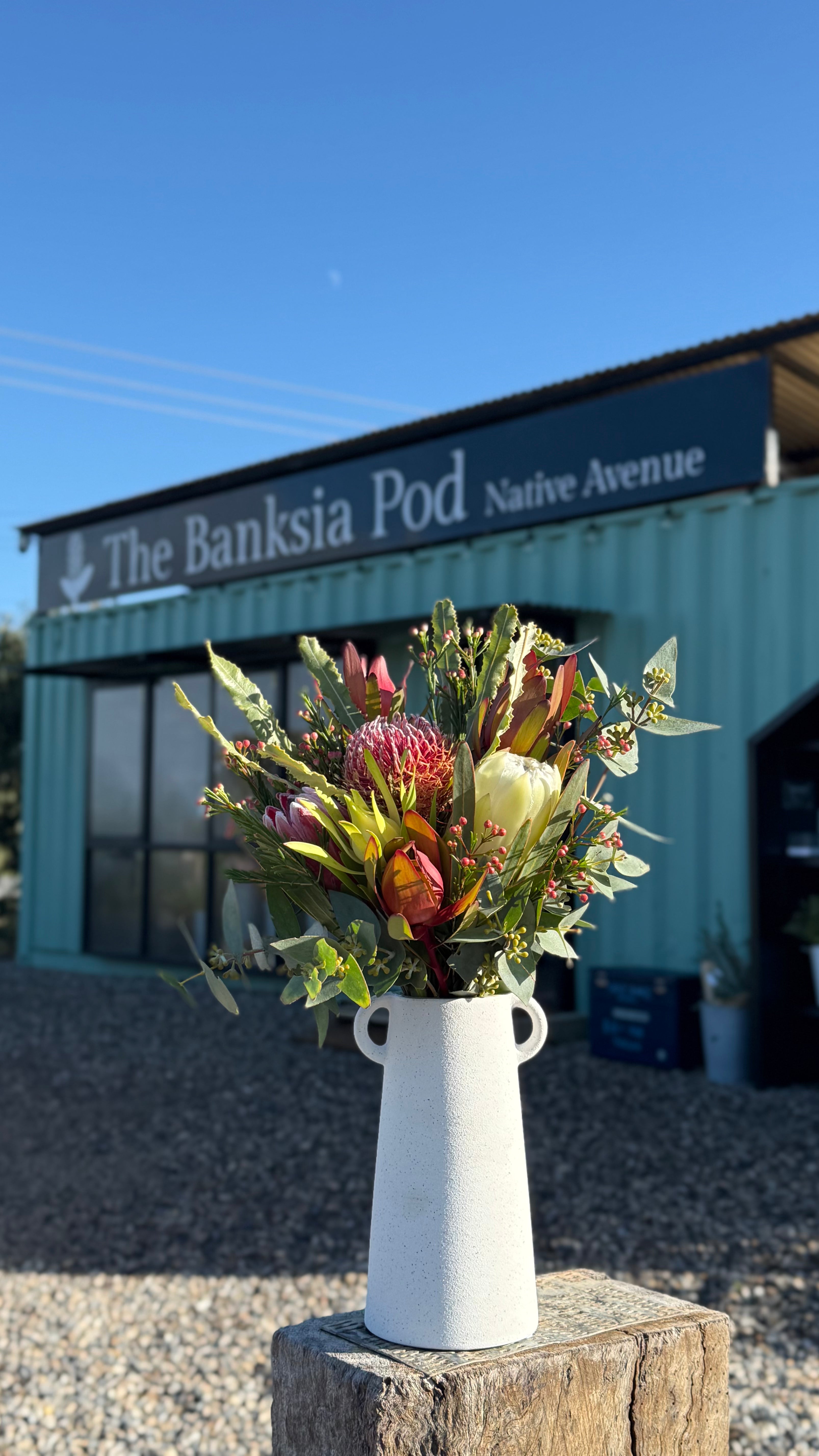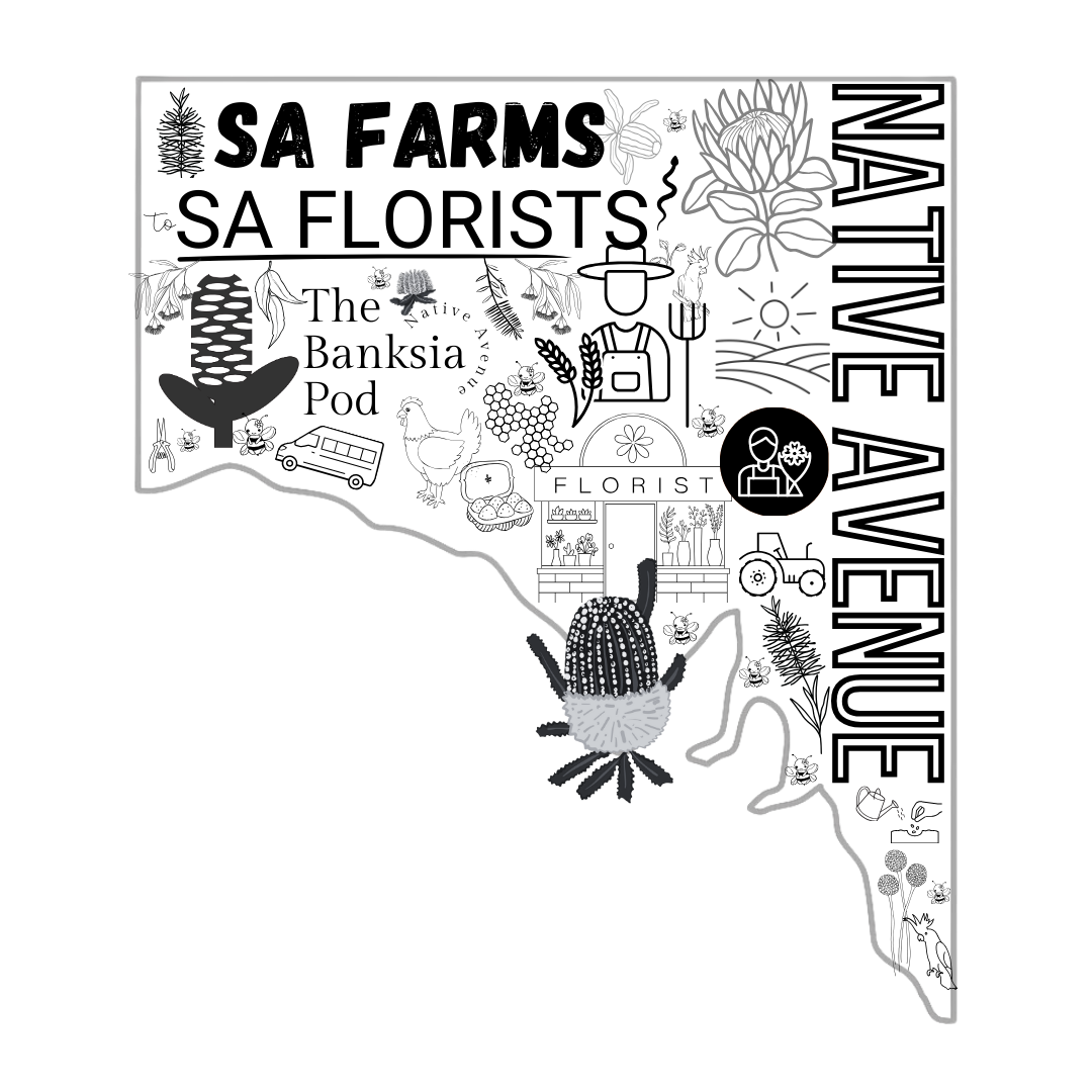 Over the years, our business has grown significantly across multiple plantations not only in our Fleurieu Peninsula but stretching all the way from Normanville and through to Mt Pleasant. Building a network of farms that we have access to cut from over a full 12 months of the year where we cut a lot of our Proteas, Banksia's and filler flowers such as Leucadendrons and Geraldton Wax. Some farms are planted with solely one item such as Blue gum and others have a mix of old and new plantations of Australian and South African species of flowers.
